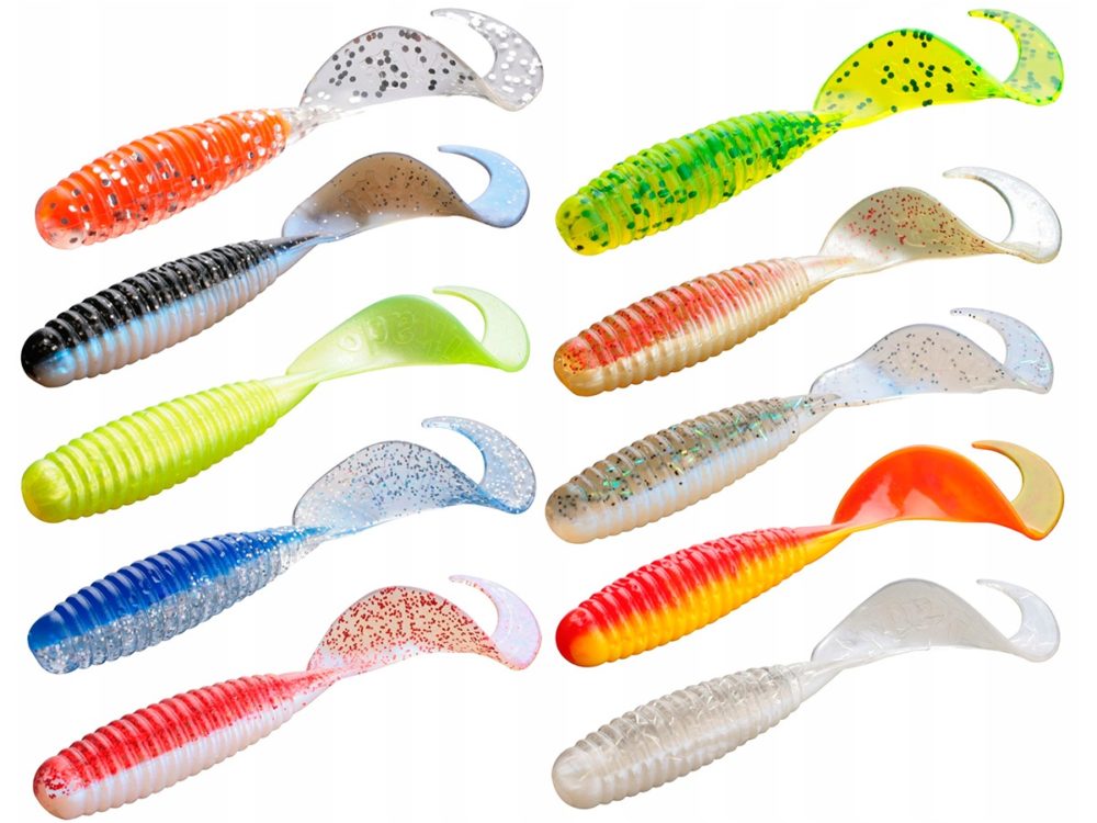 Подбирая цвет нужно учитывать состояние воды, освещенность, время года, атмосферную температуру. Существует большое количество видов твистеров для рыбалки.