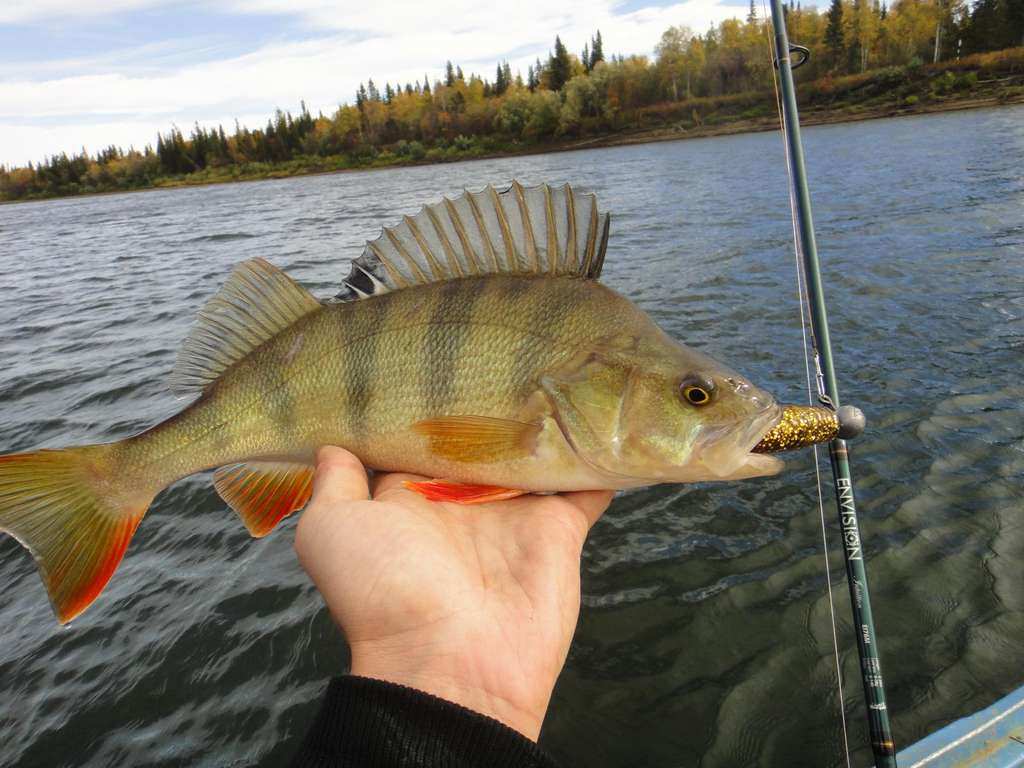 С начала осени окунь хватает всё, что проплывает мимо его носа — от мелкой рыбёшки и упавших в воду насекомых, до блестящих блёсен, разноцветных воблёров, однотонных твистеров и т.д.