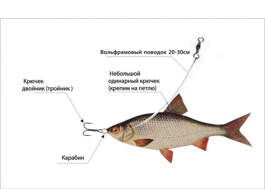 При вялом клёве щука может бить по приманке, но не заглатывать её. В этом случае живца лучше сажать на тройник.