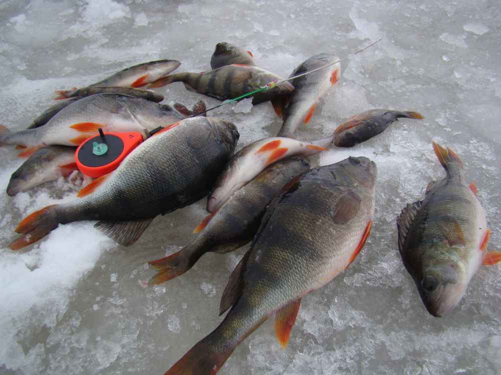 Ввиду слабой активности окуня глубокой зимой, ловля зимней удочкой на мормышку будет самой удачной.
