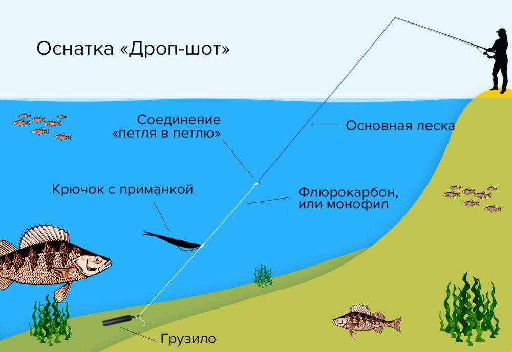 Оснастка дроп-шот создана для облавливания глубоких мест, либо прибрежной зоны.