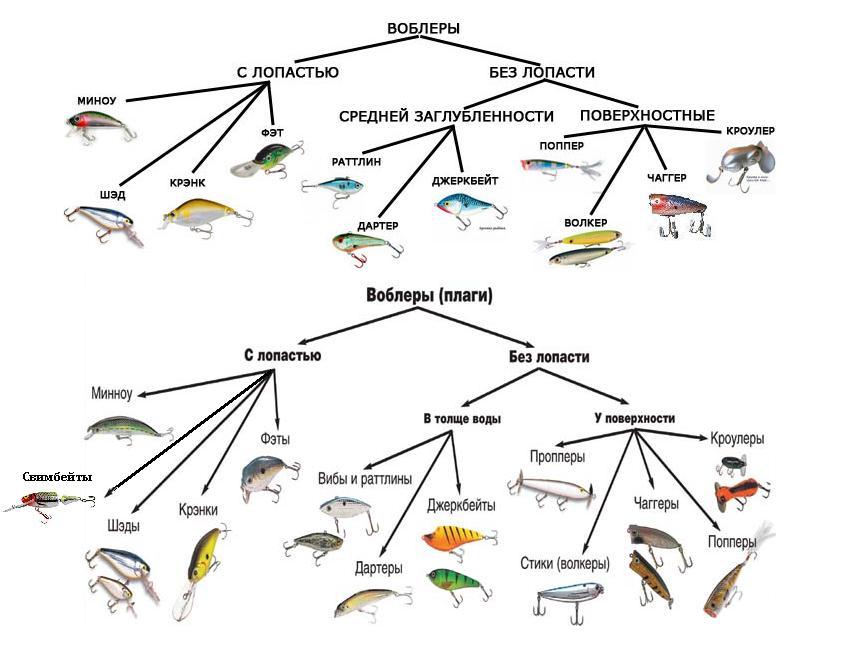 Форма тела. По такому признаку воблеры подразделяются на следующие виды: