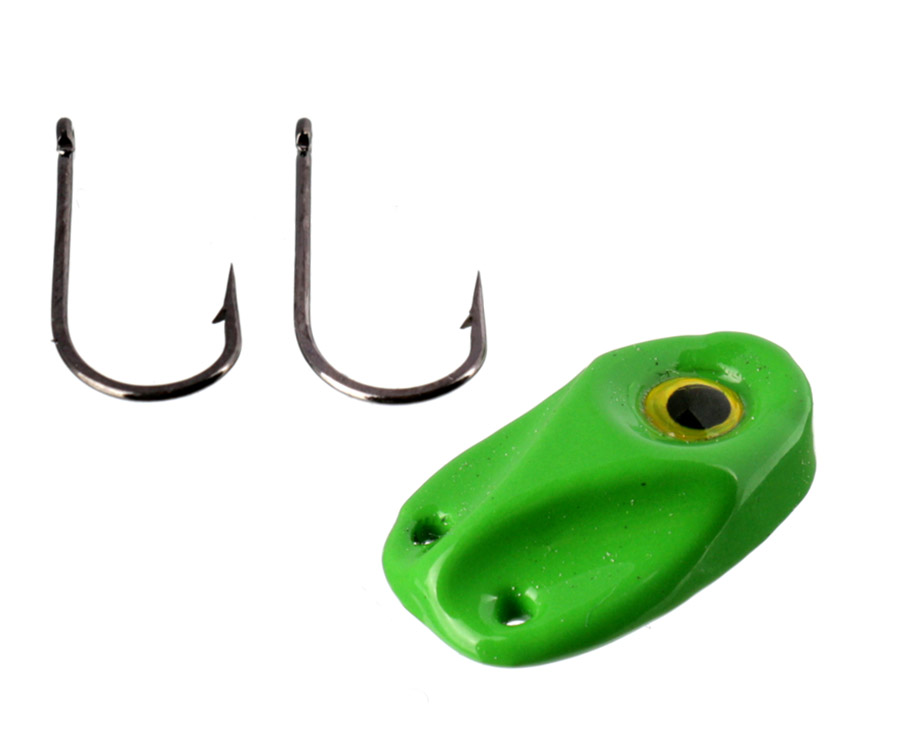 По мнению автора этой приманки, она имитирует водных клопов и гладыша. Так что «черепашкой» можно играть в толще воды точно так, как и мормышкой, или стучать по дну. На крючках «черепашки» нет бусинок и кембриков. Причина их отсутствия в том, что точка атаки, в виде яркой капельки, размещена на теле приманки.