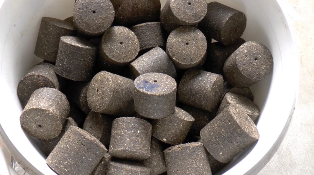 - Оснащаем жмыховку макухой и заводим крючки в ее массу. Размеры готового брикета должны соответствовать параметрам макушатника. Оптимальны брусочки 3х3х6 см.