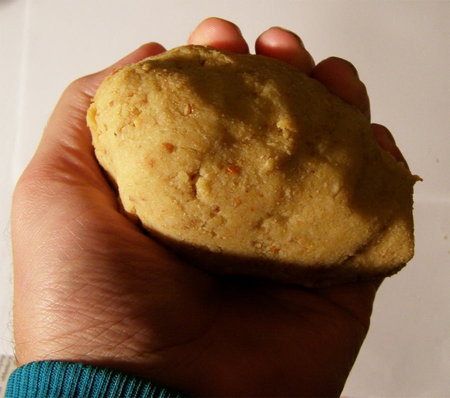 Вымешивать нужно до формирования плотного кома. Для придания запаха используют чайную ложку меда, столовую ложку растительного масла.
