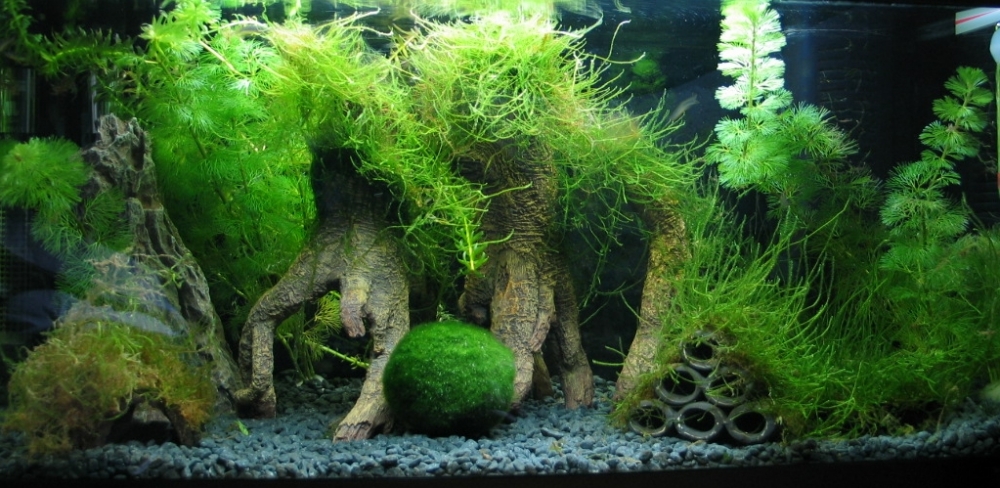 Итак, когда аквариум необходимого объема есть, нужно его облагородить, создать условия, приближенные к природным. Для этого мы не станем разводить болото, а сделаем красивое и эстетичное “помещение”. Приобретите побольше растений для аквариума и возведите из них сад вдоль задней стенки и по боковым, немного посадите зелени в центре.