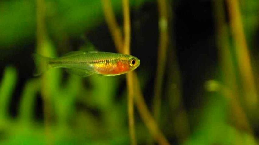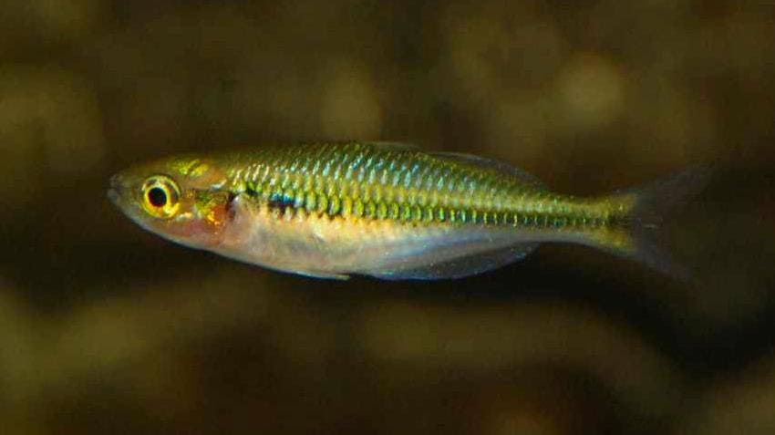 Радужница неоновая – имеет чуть более удлинённое тело, по сравнению с более типичными представителями. Окрас переливается неоновым свечением. Чтобы подчеркнуть эту особенность чешуи отражать свет, в аквариуме нужно организовать качественное освещение. Температура 22-28°C.