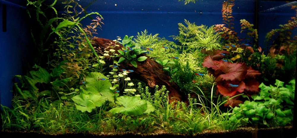 Субстрат может иметь любой оттенок, однако темные цвета выгодно подчеркивают пестроту рыб. Растения могут быть любыми