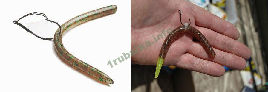 Данный тип монтажа используется при ловли на специальные толстые силиконовые черви, которые называются «ВЕКИ». За отсутствием таковых, можно использовать обычных червей, главное чтоб резина была прочной.