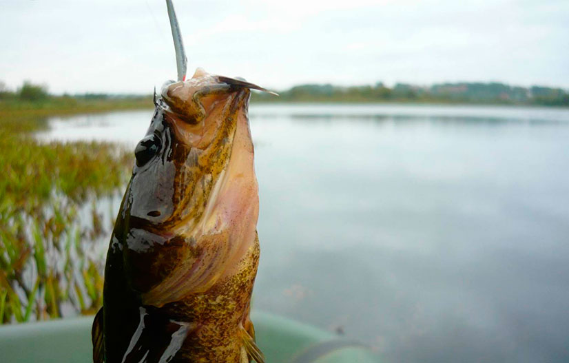 Чаще всего спиннингом ловят ротана на отвес. После того, как вы нашли небольшое окно между зарослями водорослей и другой растительности водоема, стоит забросить туда приманку и ждать поклевки.