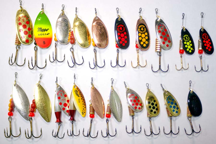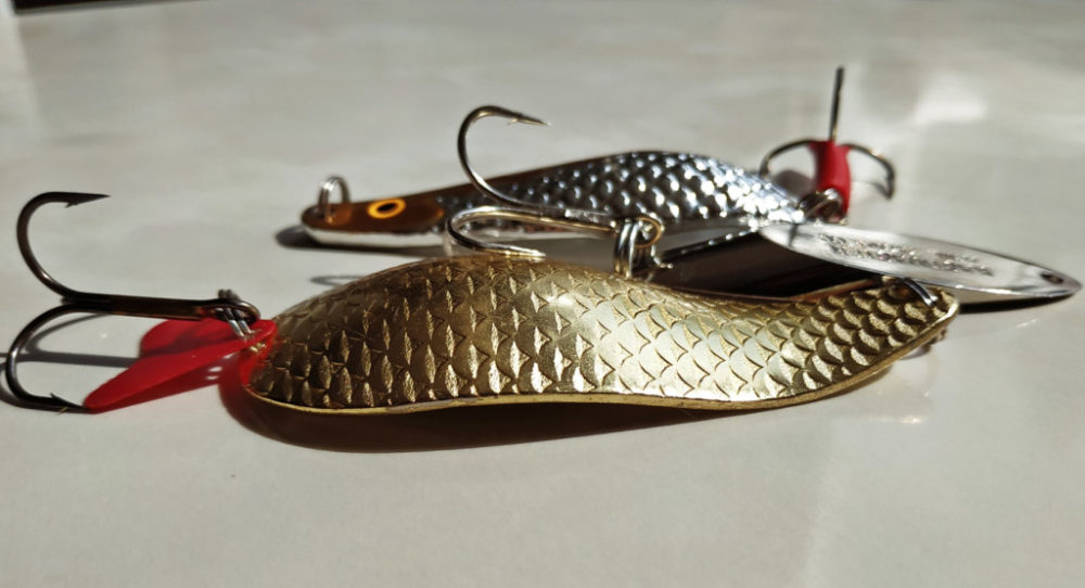 - В арсенале всегда необходимо иметь блесны разных размеров и расцветок, чтобы выбрать подходящую приманку под освещение, прозрачность воды и рельеф дна.