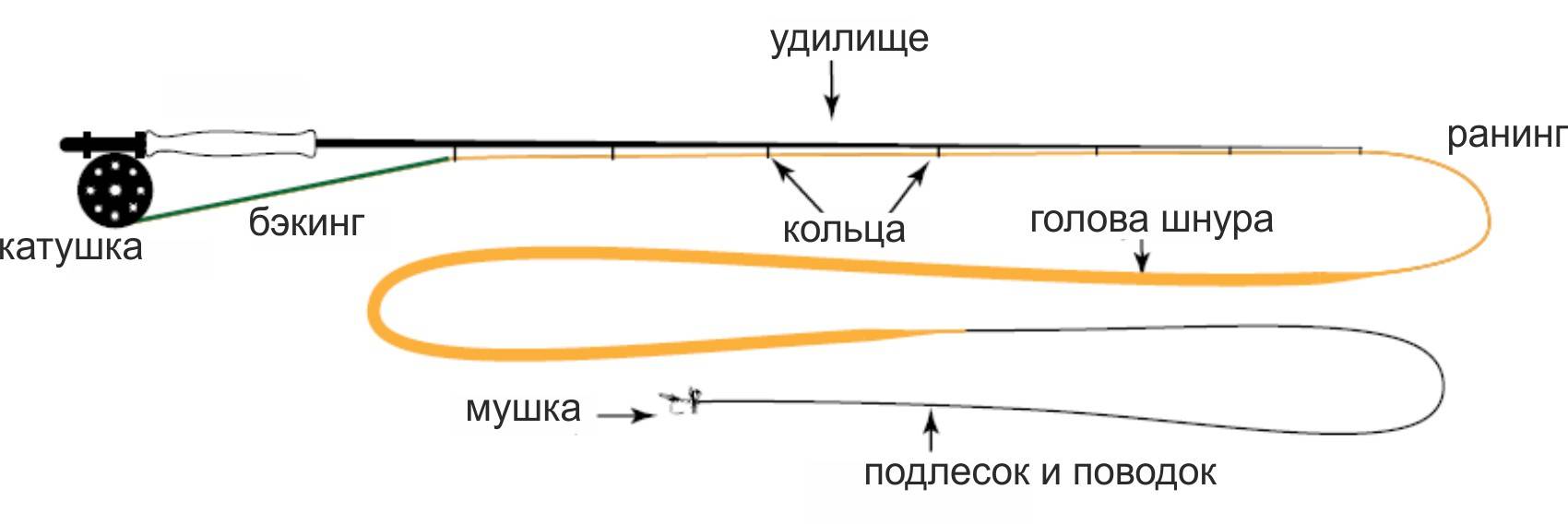 Основные компоненты нахлыстовой снасти это:
