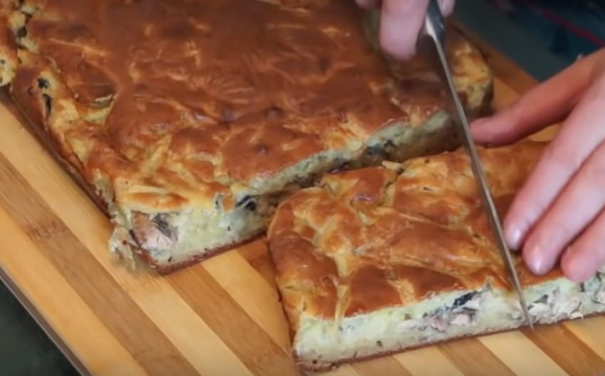 Рецепт 7: пирог на кефире в духовке с сайрой и яйцами