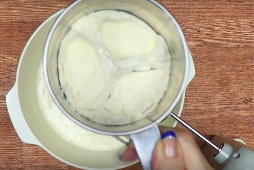 В конце приготовления тесто взбиваю миксером до однородного состояния.