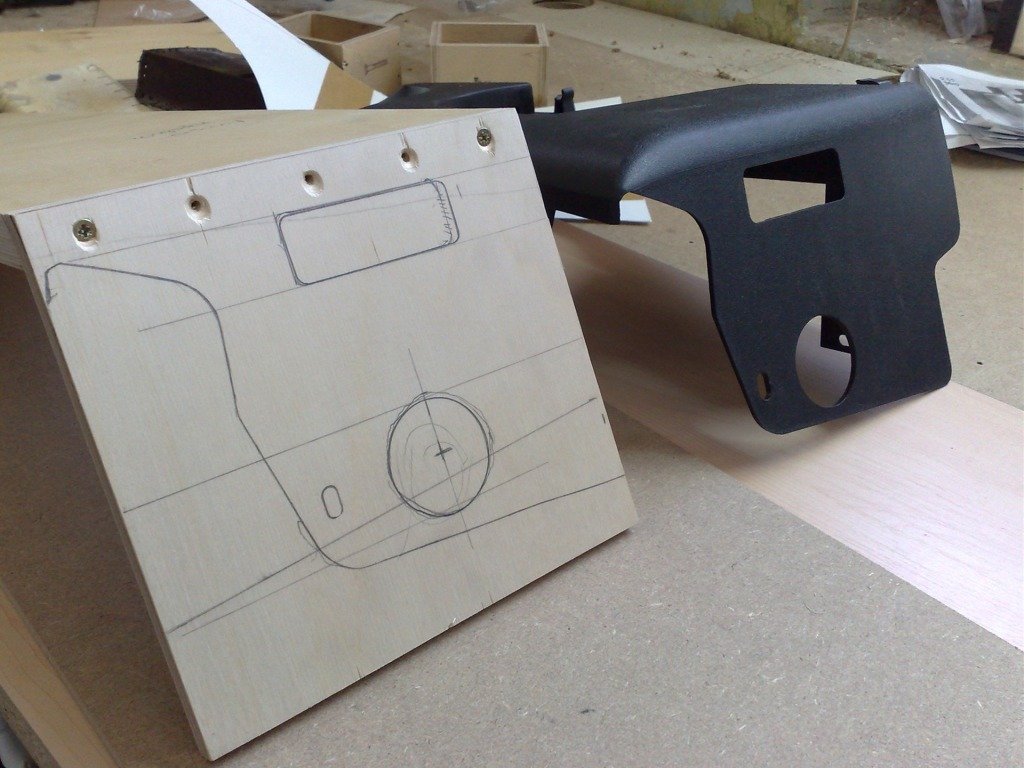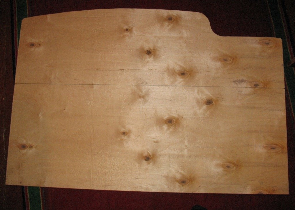 Опять же, используется фанера, но из нее уже вырезается 2 куска. Первый кусок фанеры можно будет вырезать по шаблону заводской штатную полки. Второй кусок рекомендуется оставлять на 2 см короче. Приступим: