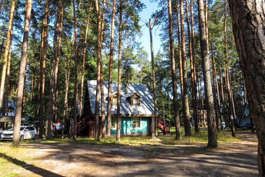 Туркомплекс, запрятавшийся среди сосен, выглядел живописно и располагал к отдыху. Даже возникло желание пожить здесь как-нибудь пару дней. На территории есть столовая и магазин. И, конечно же, песчаный пляж, который мы и искали. Но в силу того, что желающих купаться было слишком много, а раздевалка в поле зрения не попала, купание было отклонено.