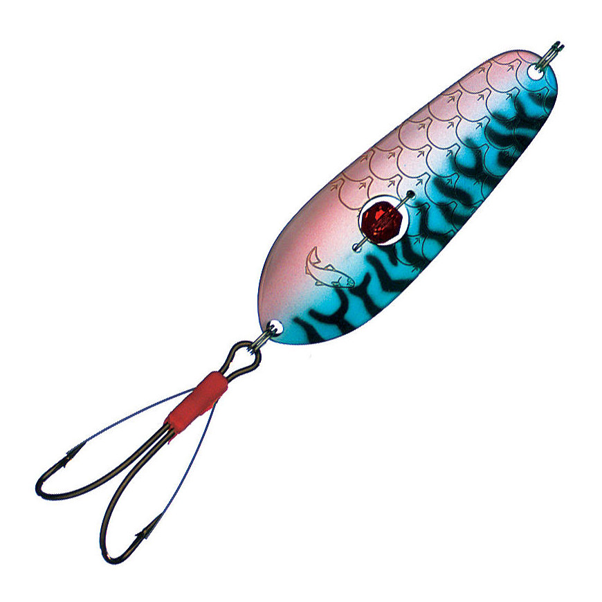 Колебалка предназначена для ловли троллингом, лососевых в северных морях. Но как оказалось, щука клюет на нее отлично, особенно в травяных зарослях, на самый большой размер. Она большая, летит хорошо, не парусит во время заброса. На эту блесну удобно ловить щук небольшого размера.