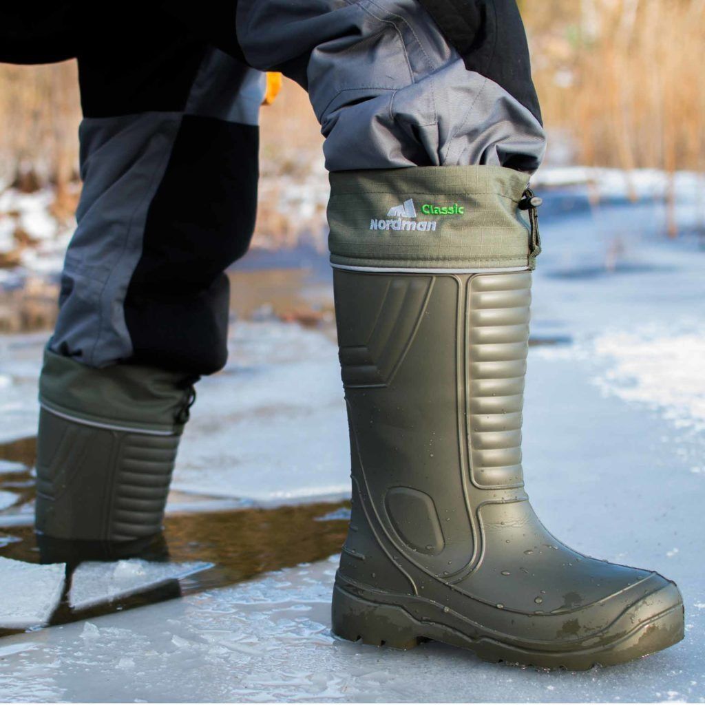 - Минимальный вес. Рыбацкая обувь с толстой подошвой не должна затруднять передвижение по сугробам, глыбам льда.