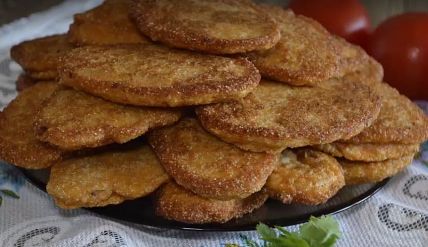 - После выжданного часа достают икру, обваливают ее в муке с обеих сторон и отправляют на разогретую сковородку с маслом. Обжаривают до образования хрустящей золотистой корочки;