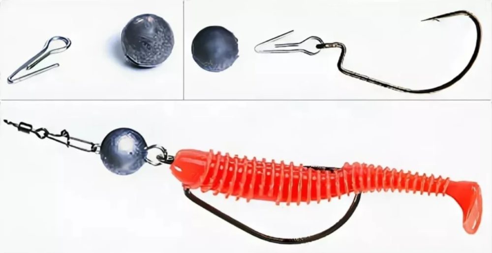 Приманку, оснащенную данным образом, можно использовать как с «ушастым» грузилом, так и на оснастке с боковым отводом.
