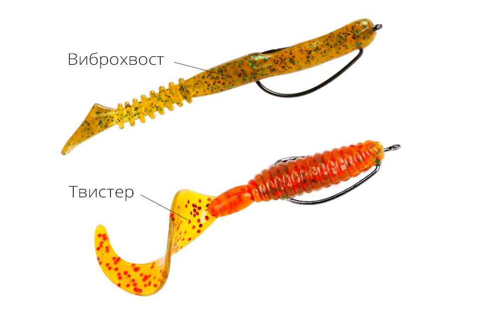 В основном на офсетные крючки монтируют резину (силиконовые приманки) – твистеры, виброхвосты и.т.п.
