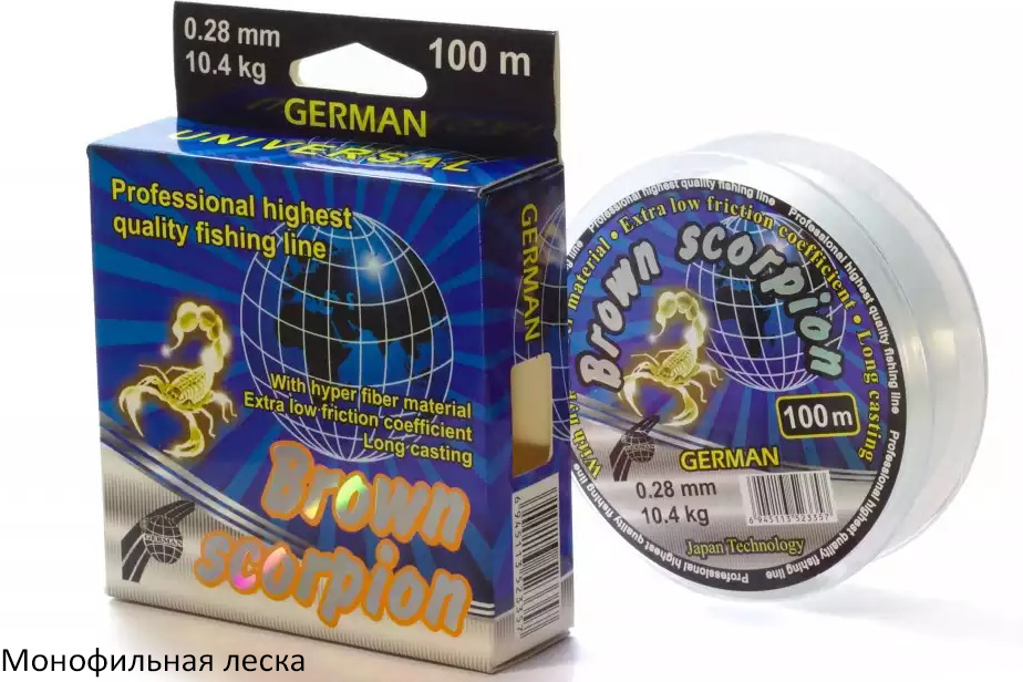 Если в безкатушечных вариантах монтируется леска небольшой длины (короче удилища), то на катушках надо иметь запас не менее 50−100 метров. Леска для всех типов подбирается монофильная, в зависимости от размера и темперамента рыбы, диаметром от 0.12 до 0.35.