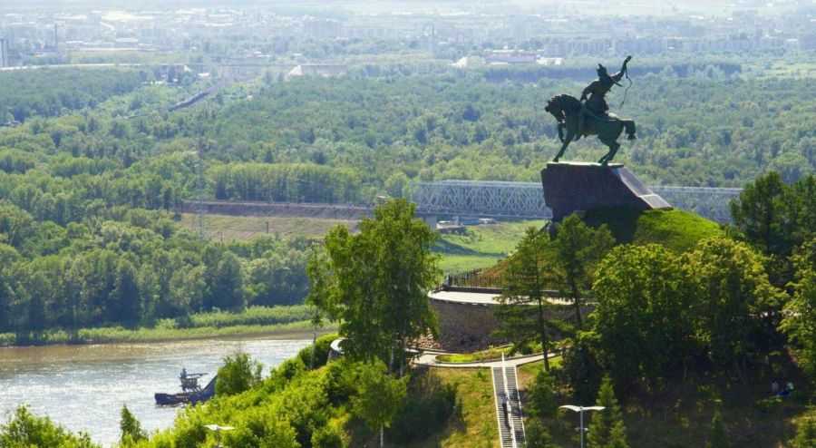 Главным символом города и республики стал памятник национальному герою Салавату Юлаеву. Когда вы едите на поезде, то увидите как он величаво стоит на высоком берегу реки.