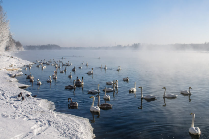 Но в температуре воды заключается уникальность озера Лебединое (Светлое) Алтайского края. Свое второе название оно получило не просто так. Это единственный водоем Алтайского края, где прекрасные белоснежные лебеди остаются зимовать. Это удивительное явление для континентальной климатической зоны.