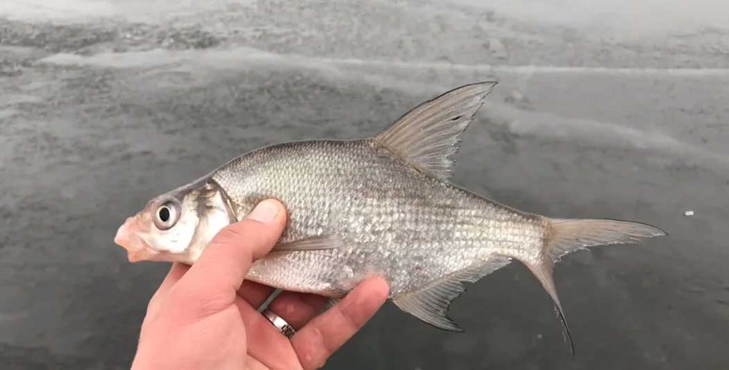 Ловля подлещика на этом водоеме все же не такое простое дело. Его, как и окуня следует искать, перемещаться по водоему вслед за рыбой. Тактику пришлось сменить и активное перемещение с одной лунки на другую наконец начало приносить свои плоды. Уже на первой же новой пробуренной лунке при опускании снасти произошла мощная поклевка. После подсечки удалось вывести из лунки отличного подлещика, по местным меркам.