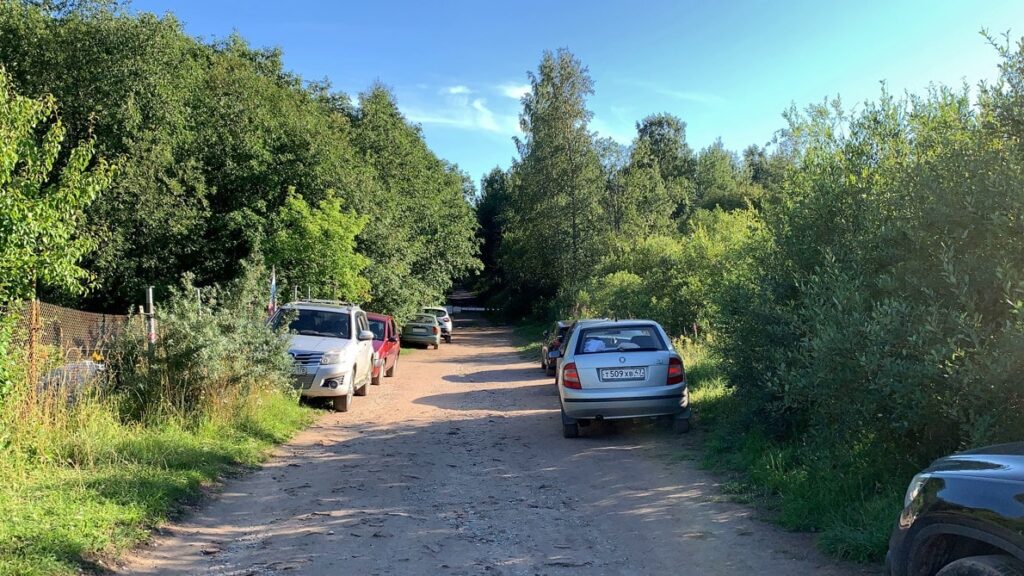 Парковка на Железнодорожной улице где асфальт за километр до экотропы