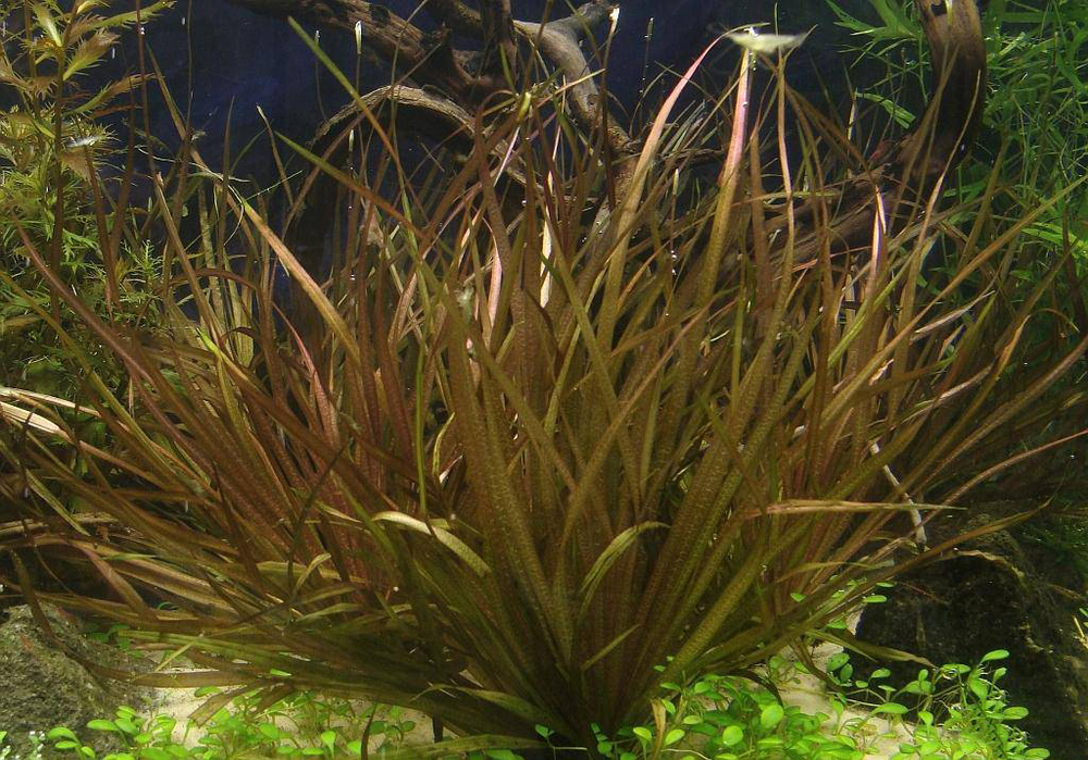 Несложен в содержании. Имеет красивый необычный вид: листья коричневые с оранжевым оттенком на красном стебле. Вода должна полностью покрывать растение, по мере роста добавляют. Обычно высаживают возле задней стенки аквариума.