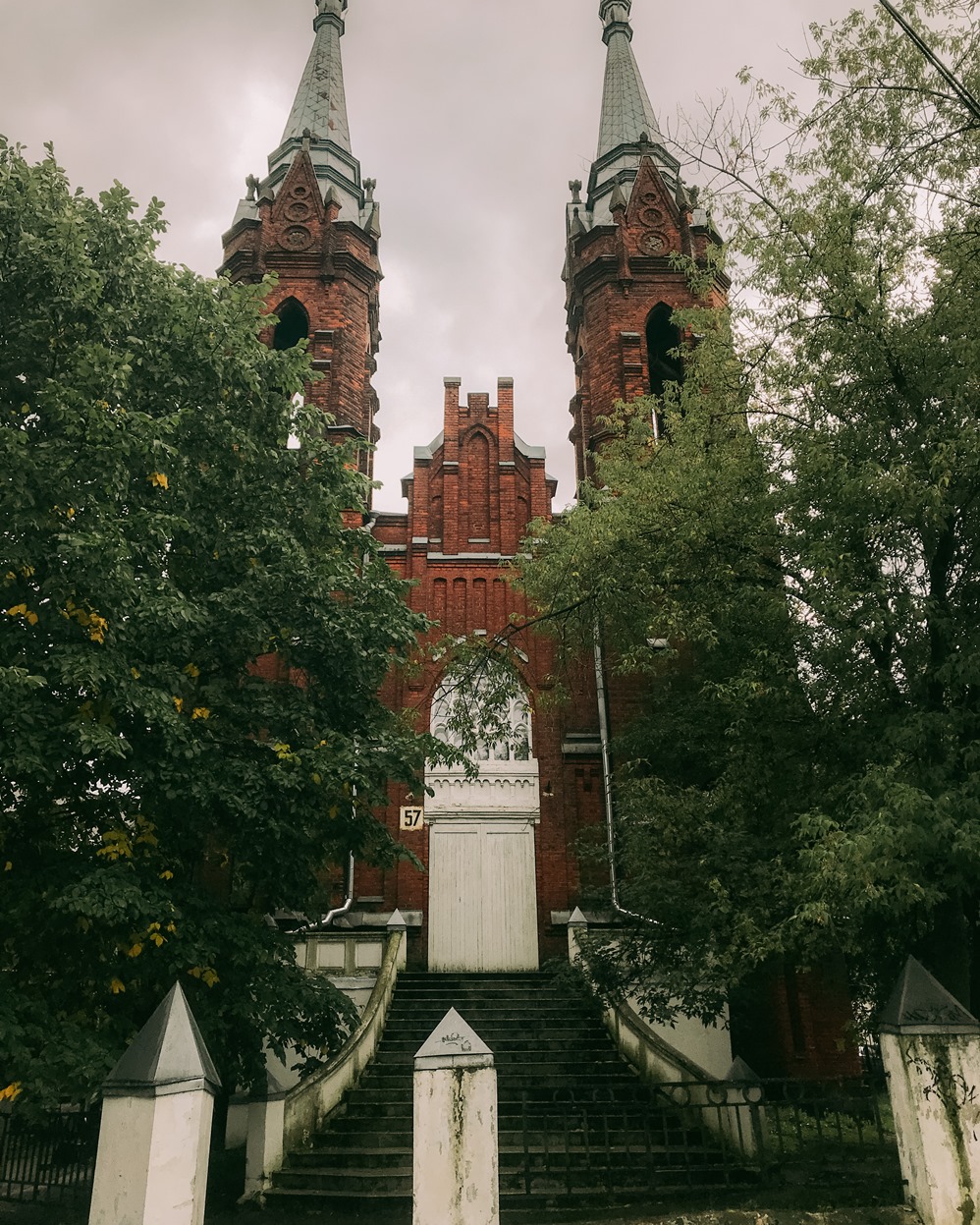 Кто бы мог подумать, что на древнерусской земле я смогу обнаружить потрясающий готический храм. Полное название костела – костел Святейшего Сердца Иисуса. Это единственное культовое строение в неоготическом стиле на всей Верхней Волге, причем построенное еще до революции. Свое полное название Польский костел получил благодаря статуе воскресшего Иисуса Христа. Ранее она была размещена по центру фронтона, но до наших дней не сохранилась.