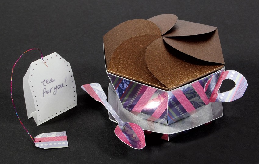 За то это время вырезается полоска из картона шириной 3 см. В зависимости от того, поделки из кружек какого дизайна вы хотите увидеть в итоге, полоску можно вырезать ровной/изогнутой. После этого необходимо придать ей при помощи красок необходимый цвет и убрать до полного высыхания.