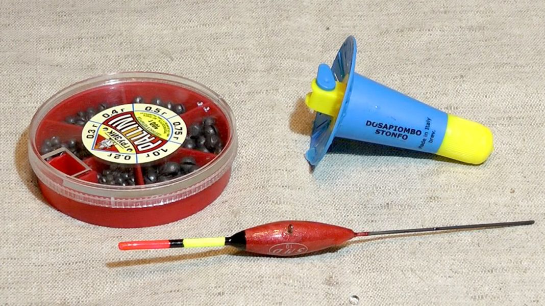 - Грузила. Подбирается так, чтобы поплавок стоял, тело и киль были в воде, а антенна – над водой.