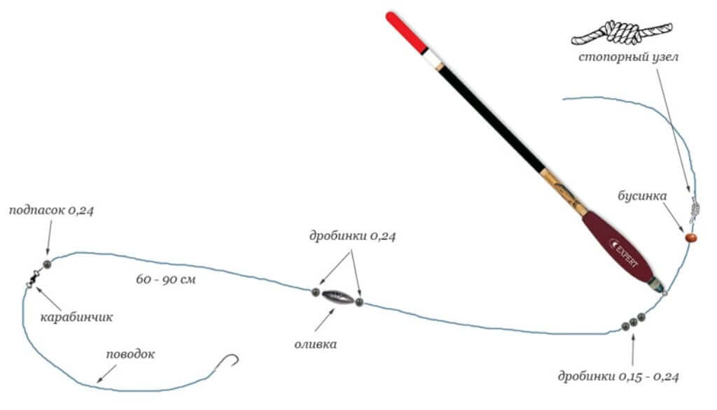 Правильно подобранная огрузка подразумевает наличие оливки в качестве основного груза, а также от 3 до 5 дробинок, между которыми должна быть сохранена дистанция около 4 см