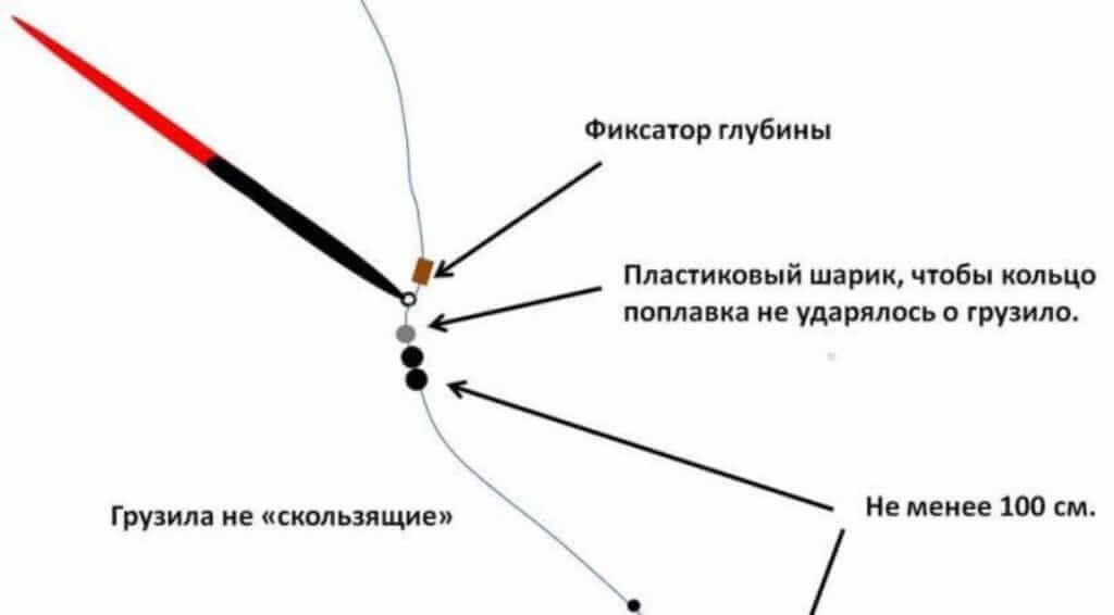 Если ловить приходится в плохую погоду или при течении, то нужно добавить дробинок, чтобы поплавок не качало.