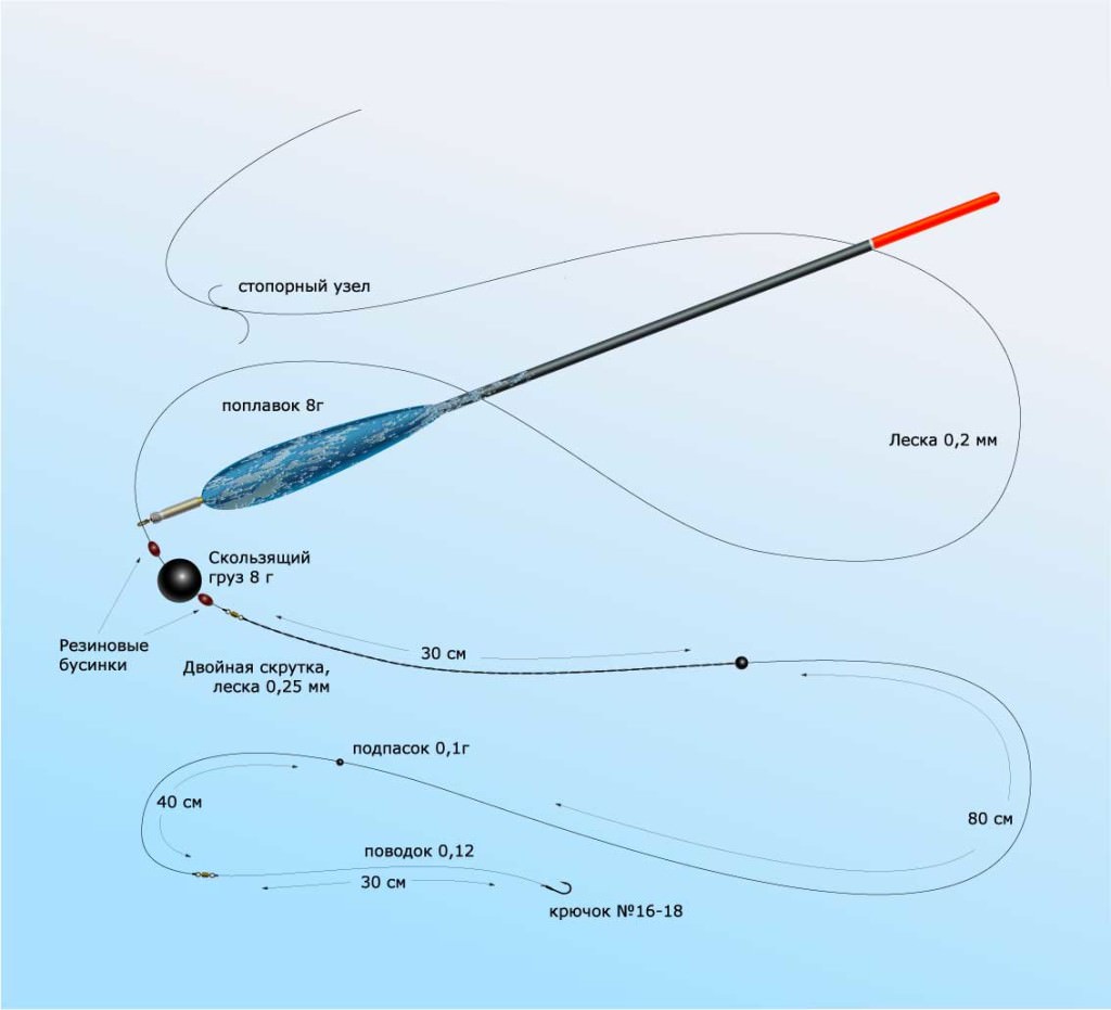 Снастью со скользящим поплавком комплектуют все виды удилищ.
