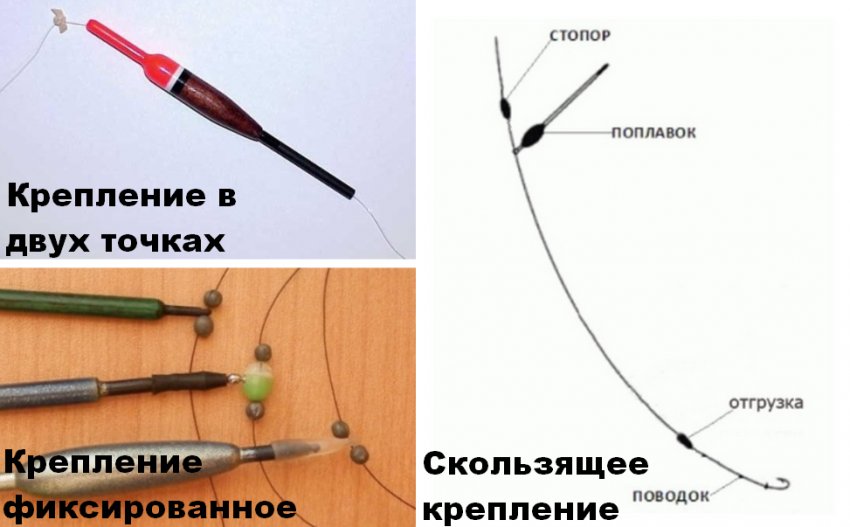- глухое (жёсткое) крепление, при котором поплавок закреплён жёстко и не может самостоятельно передвигаться по леске. Используется, когда глубина лова не больше длины удилища;
