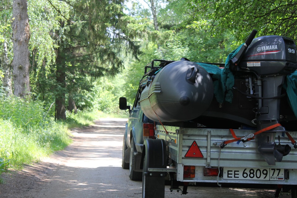 До реки меньше километра, удобно — собрался на рыбалку, прицепил прицеп, который стоит в гараже уже с лодкой, и поехал. Сборы минимальны. На дальние расстояния, лодку собираю и гружу в этот прицеп, только в варианте с тентом.