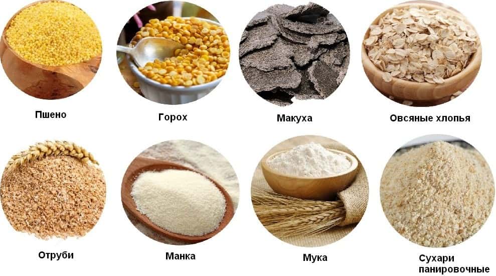 - жмых (макуха) семян подсолнечника, конопли и т.д.;