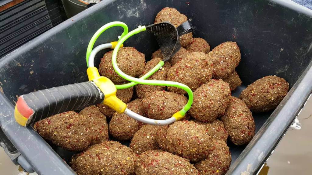 Замешанная смесь формируется в шары, размер которых зависит от имеющихся условий. Если течения нет, а дно твердое и ровное, лучше использовать небольшие комки. В случае, когда течение быстрое, оптимальным вариантом будут шары размером 5-8 см в диаметре.
