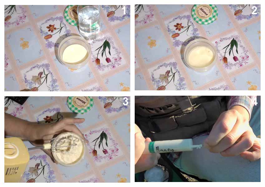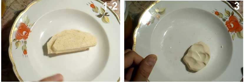 В блендере перемешать обычную гороховую кашу с мякишем. После чего добавить воды для необходимой консистенции.