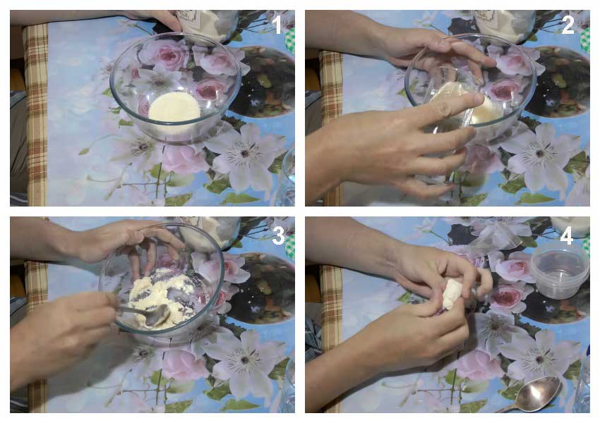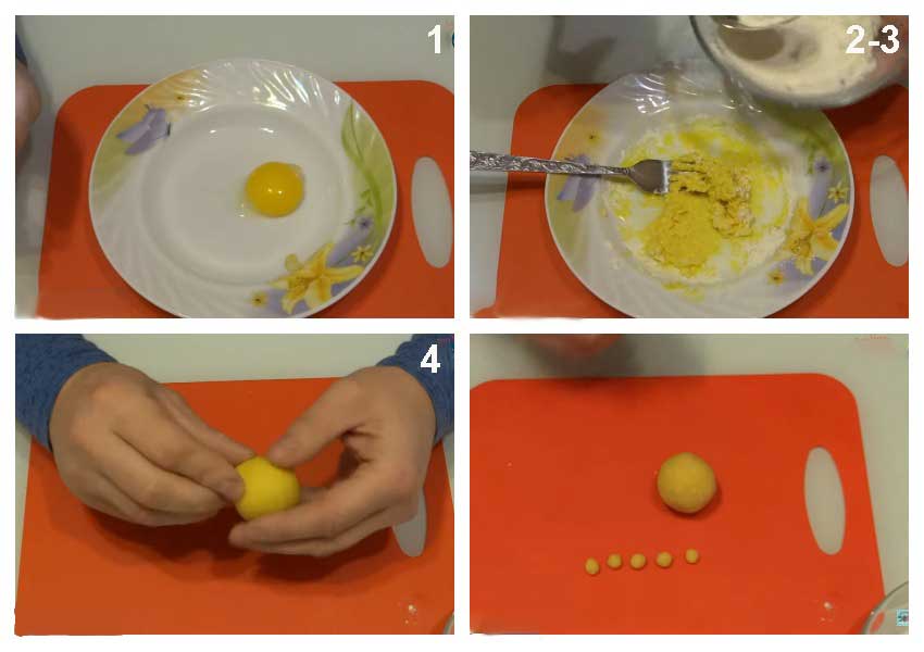 Для начала необходимо смешать все сухие ингредиенты, потом к сухой смеси аккуратно добавить куриные яйца. Лучше сначала размешать яйца в отдельной таре. В результате перемешивания должно получиться тесто, из которого затем необходимо сформировать шарики.