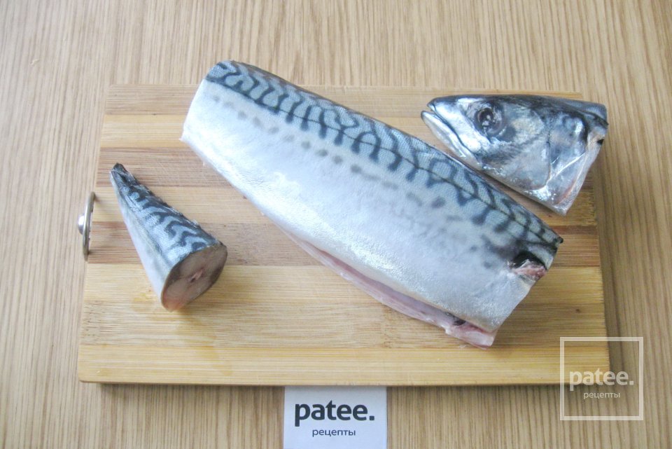 Непосредственно после разморозки рыбу необходимо тщательно промыть под теплой водой. Следующий шаг – избавить скумбрию от всех внутренностей, а также головы. Очищенную часть разрезать на равные части среднего размера.