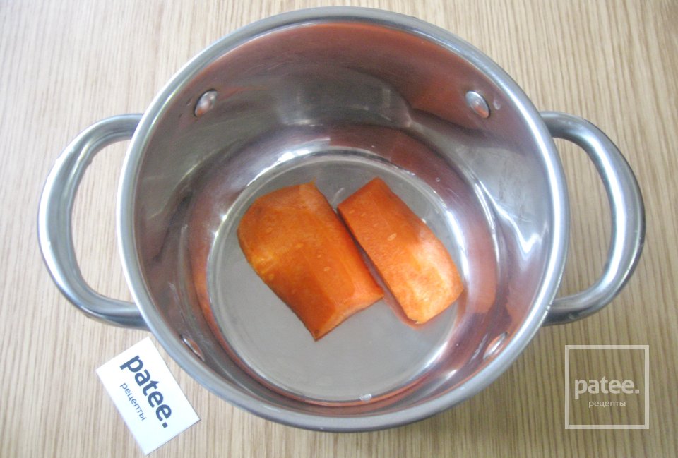 Морковь очистить, помыть и выложить в небольшую кастрюлю.