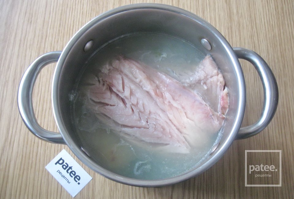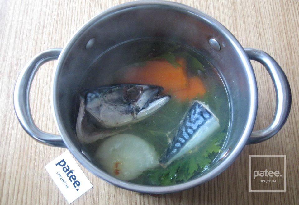 Осторожно! После закипания бульона выделится достаточно много пены, ее необходимо убрать. Кроме того, варить скумбрию можно вместе с головами, бульон получится очень насыщенным и вкусным