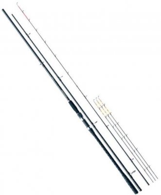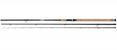 Мощная модель быстрого строя для предназначена для ловли на среднем, быстром течении с использованием тяжелой оснастки. Бланк изготовлен из композита. Величина теста предусматривает использование кормушек весом 40 – 90 г. Конструкция из 3 секций раскрывается на длину 3,6 м. При сборке она уменьшается до 1,27 м, что повышает удобство транспортировки удилища. Оснащено легкими пропускными кольцами SIC, комбинированной рукояткой, держателем катушки винтового типа.