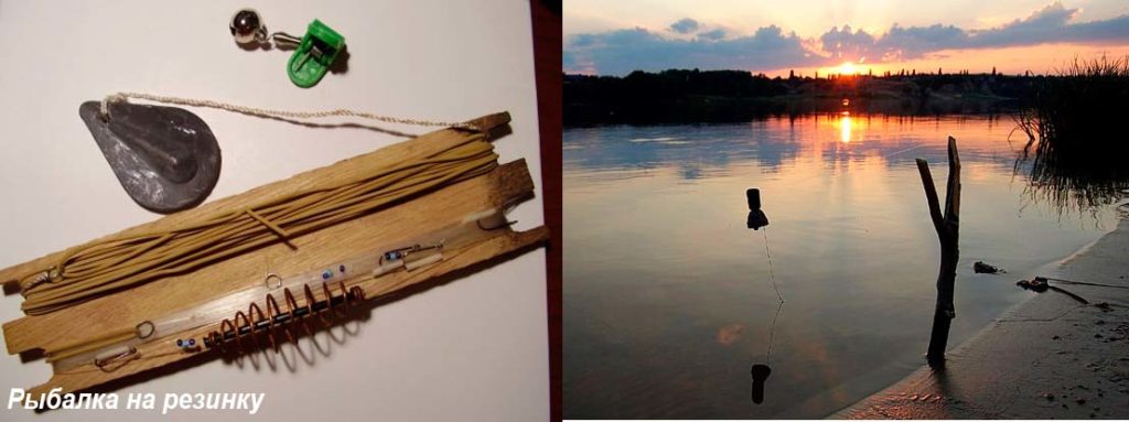 Одной из таких популярных видов рыбалки является ловля на «резинку» или донку с резиновым амортизатором. Изготовить ее просто, она не требует дорогостоящих рыболовных комплектующих. По сути, это обычная донка, с той лишь разницей, что между конечным грузилом и леской с поводками крепится отрезок авиамодельной резинки (ее еще называют «венгеркой»). На такую снасть ловится практически любая рыба, обитающая в придонных слоях воды. Варьируя насадкой и техникой ловли, «резинкой» можно успешно ловить как мирного карася или плотву, так и щуку или окуня.