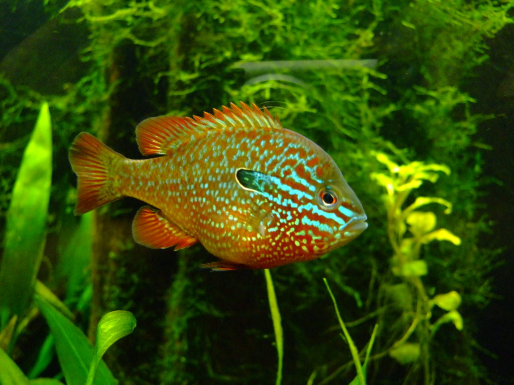 Встречается в пресных водах. Солнечные окуни часто держат дома, поселяясь в аквариуме за их привлекательный внешний вид.