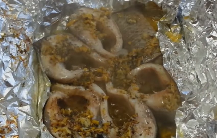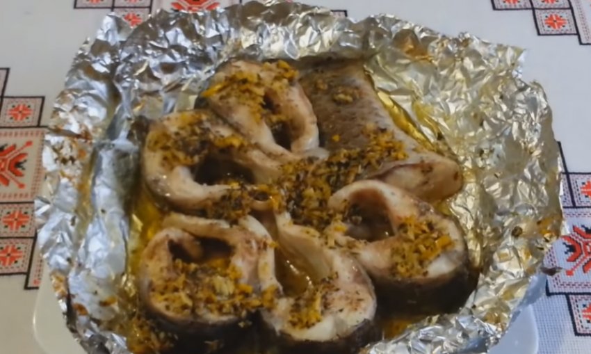 Затем завернуть белого амура в фольгу и отправить в духовой шкаф на 30 минут при температуре +200°С.